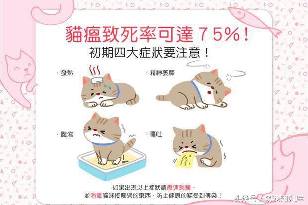 【症状4】腹泻当猫咪不断拉肚子,就算肚子裡已经没有之前吃的食物了,还是会不断地拉……甚至会排出水状又带有腥味的血便,不赶快解决的话,甚至会让猫咪脱水,最后导致死亡。猫瘟是一种泛白血球减少症,是流传于猫咪的高传染性疾病,死亡率高达50-75%。幼猫由于抵抗力低,更容易染上猫瘟,且年纪越小,死亡率越高……一但发现猫咪有以上症状,请尽速就医!并消毒猫咪接触过的东西,防止健康的猫猫受到传染!